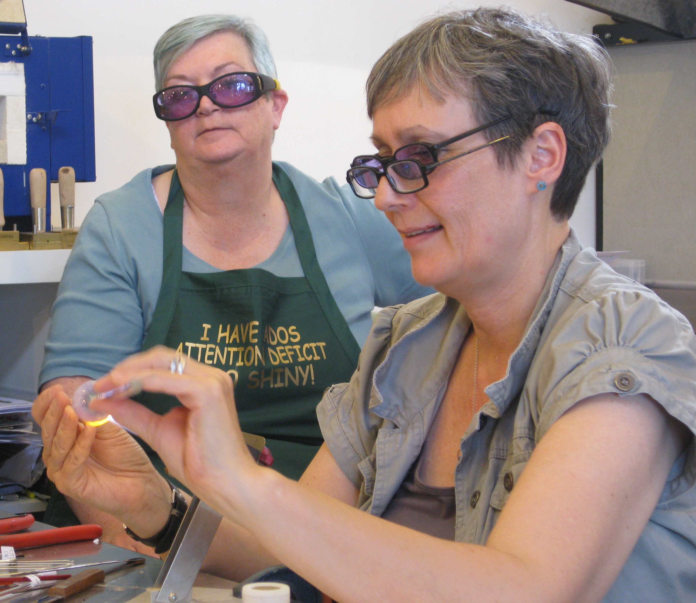 The class was run by the lovely and infinitely patient Carol Passaro, and the first thing to do was chose a tin as each one had a different colour combination in it. Colours chosen, thread cut and conditioned, we settled down to work. I don’t think I have ever heard a bunch of lampworkers be so quiet! The concentration was palpable.